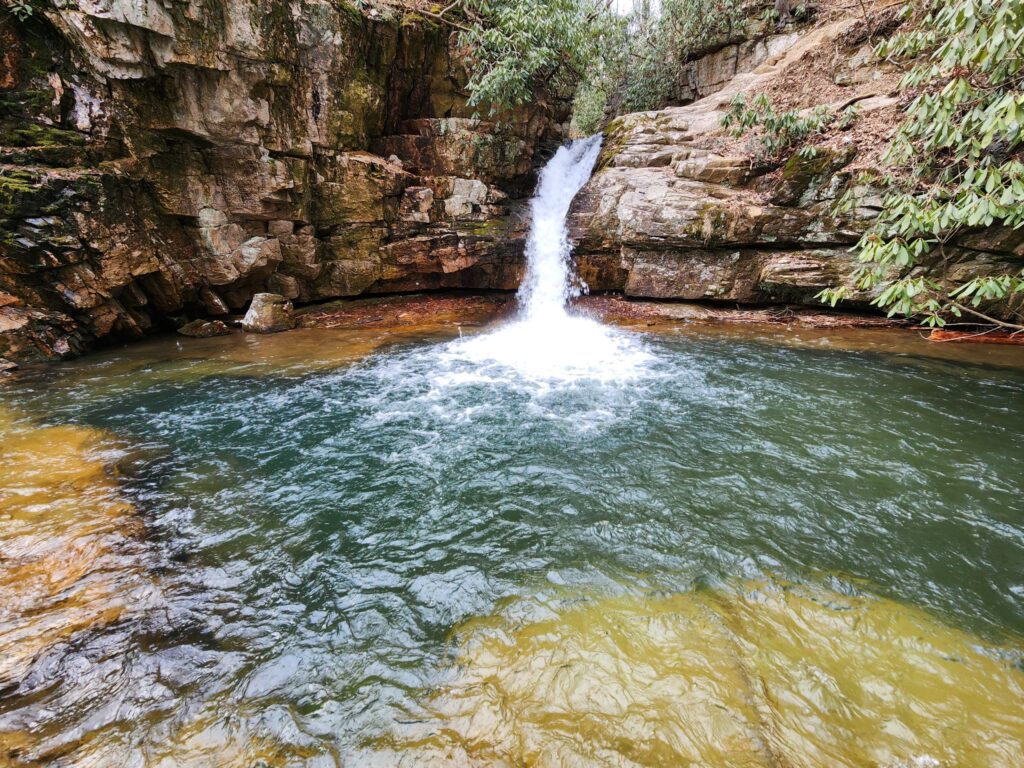 | Trail & Hiking Experience | Easy-to-moderate short hike starting from a small unmarked parking area. Features wooden steps (some steep) and rooty sections leading to multiple waterfall viewpoints and the main blue hole pool. Great for all skill levels with caution on descents. | Holston Mountain base (Carter) | ~20-30 min | Cherokee National Forest |