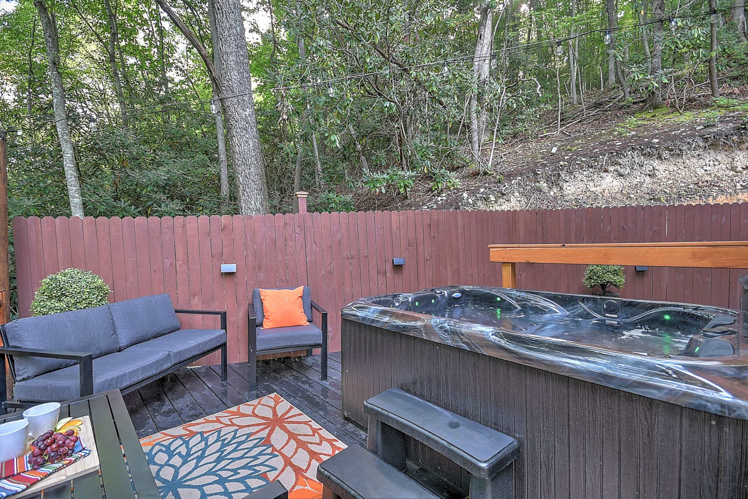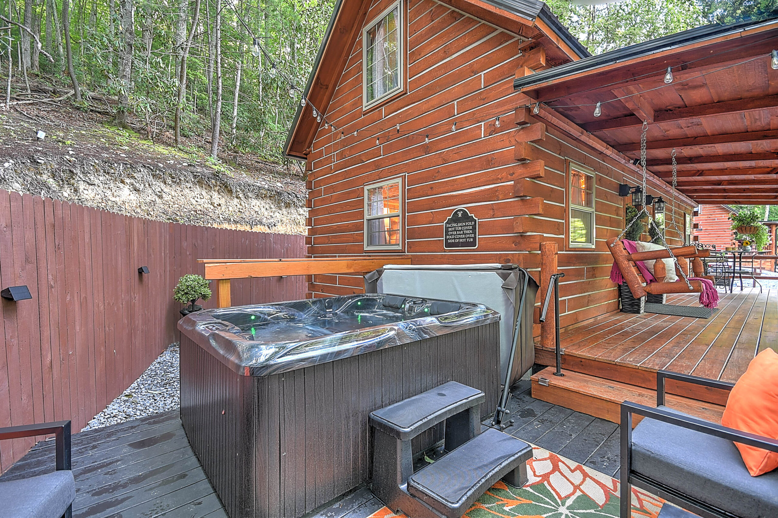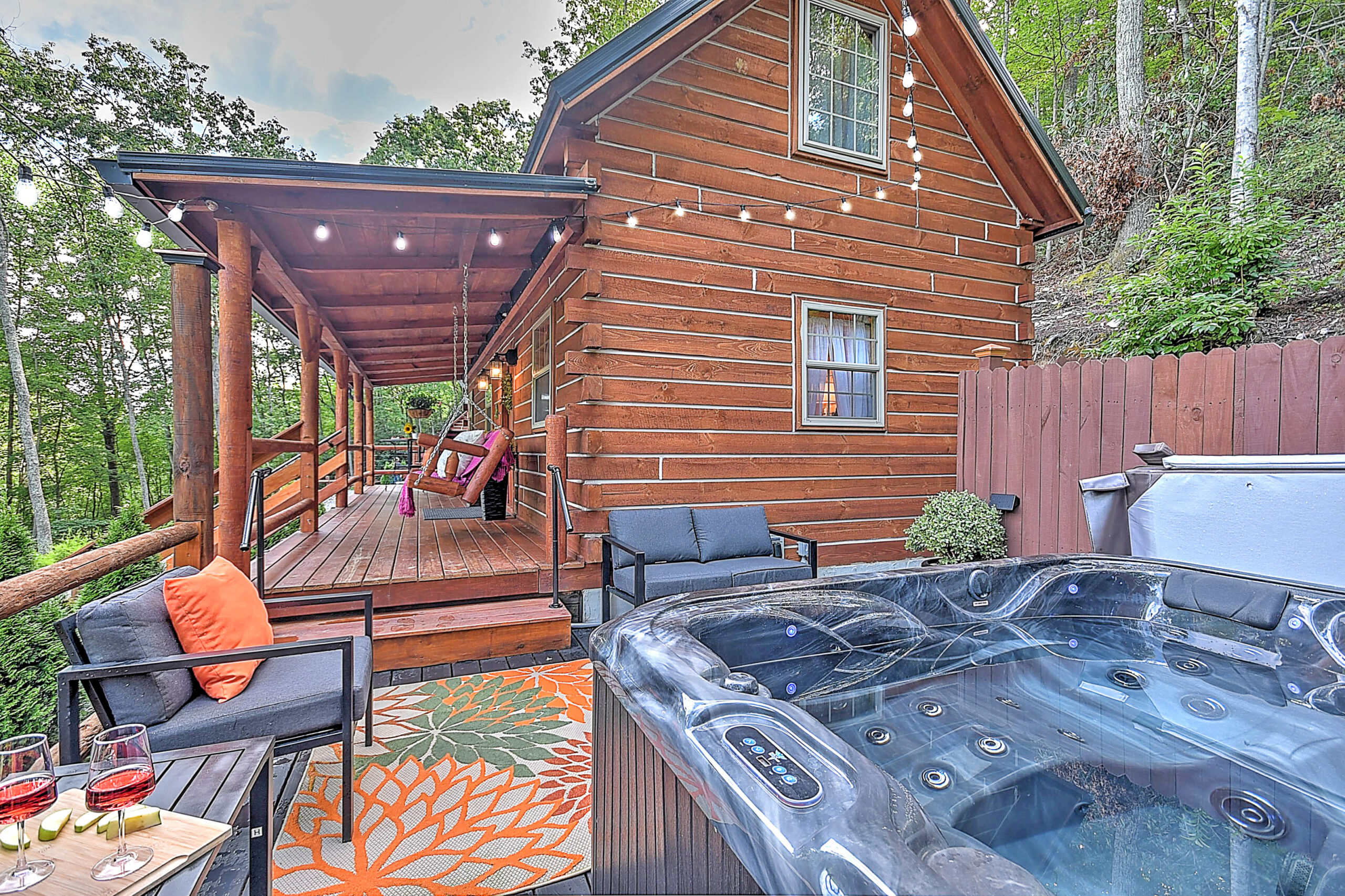 Step into a romantic haven with our cozy one-bedroom escape, where elegance meets woodland charm. Enjoy a plush queen bed with premium linens, a stone fireplace for cozy Tennessee nights, and a private hot tub with forest views—perfect for intimate getaways. Prepare a candlelit meal in the fully equipped kitchen, complete with a coffee nook featuring K-cups and fresh grounds, or savor morning coffee on the porch as deer pass by. Pet-friendly amenities include a dedicated walking area and on-site hiking trails, ensuring your furry companion joins the adventure. Sleeps up to 6 with a sofa bed; ideal for couples, small groups, or solo travelers craving solitude.